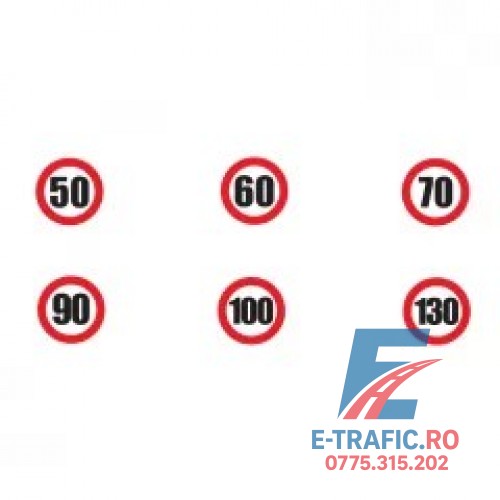 Etichete: Autocolante cu limita de viteza 50, 60, 70, 90, 100 si 130 KM/H, diametru 13 cm