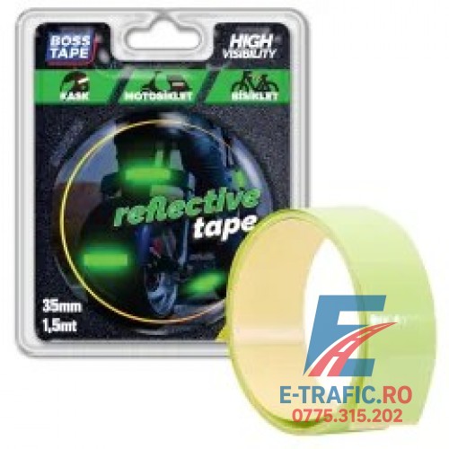 Bandă adezivă reflectorizantă tip fosforescentă, cu dimensiunile de 3.5cm x 1.5m.