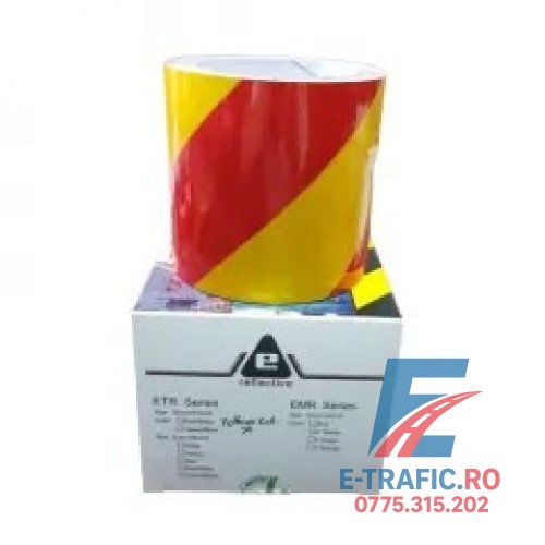 Etichete: Banda adeziva reflectorizanta, galben/rosu, 10cm x 10m