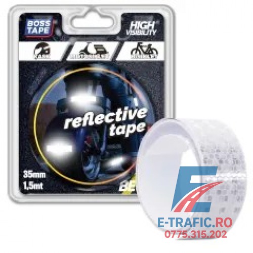 Bandă adezivă reflectorizantă de culoarea albă, tip fagure, cu dimensiunile de 3.5cm x 1.5m.