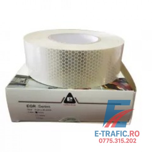 Bandă adezivă reflectorizantă tip fagure de culoarea alba cu dimensiunile de 5cm x 30m
