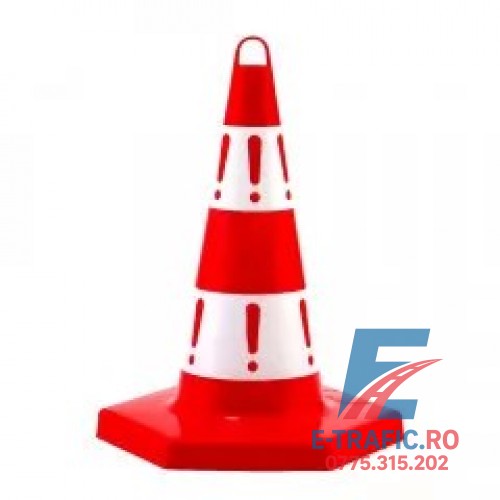 Con din plastic cu înălțimea de 50 cm. cu cârlig de transport. Acesta este folosit pentru delimitarea zonelor în lucru sau delimitarea unor zone de trafic.