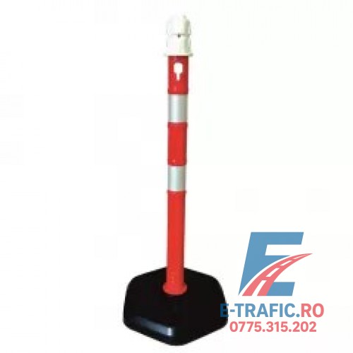 Etichete: Stalp mobil cu benzi reflectorizante si greutate 3.7kg, diametru Ø 6.3cm, alb-rosu